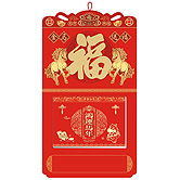 • 特度對(duì)開中國紅金雕窗花掛歷